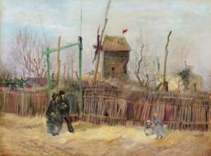 Schilderij van Vincent van Gogh: ‘De molen’ (Le moulin, Parijs 1887). Op veel schilderijen van Vincent van Gogh zijn tuynheggen te zien, niet alleen in Frankrijk maar bijvoorbeeld ook bij Den Haag